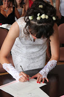 雙方交換完婚戒以後,要開始簽署結婚證書,
