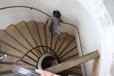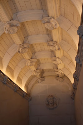 在不是那麼了解西方建築的我可能不會發現他的特別, 經由簡介發現樓梯的設計是最早在法國建造的義大利直式樓梯, 頂 銜接處裝飾