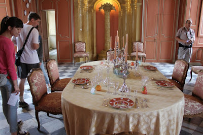 前往三樓大廳,是19世紀時期的城堡所有人Madame Pelouze珮魯茲夫人所裝修。 在旺多姆公爵後,城堡曾處於半廢棄狀態長達100年之久, 之後被波旁王朝的公爵Louis IV Henri de Bourbon-Condé路易四世買下, 他將城堡內的財物一一出售,最後城堡也賣給Claude Dupin克勞德, 克勞德的妻子就是前面提過的杜潘夫人, 她的聰慧使城堡在法國大革命時期得以保存下來, 1864年,一位蘇格蘭商人Daniel Wilson丹尼爾為了女兒珮魯茲夫人將城堡買下。 在短暫的擁有後,期間轉接過多任主人, 1913年被梅尼耶家族,也是他提供城堡作為一次世界大戰的臨時醫院, 一直到今日城堡仍為梅尼耶家族所有。 說回三樓大廳,展示著一幅已經有些褪色的19世紀Neuilly壁毯, 畫著謝爾河上有威尼斯式的