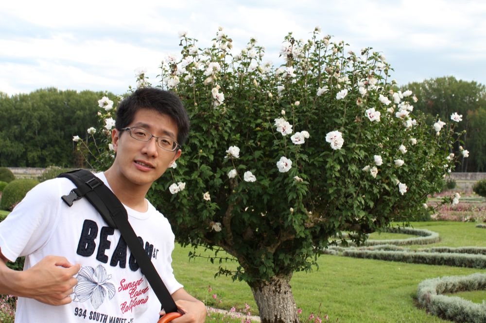 花園的佈局很整齊,中間還佇立著一株芙蓉花。