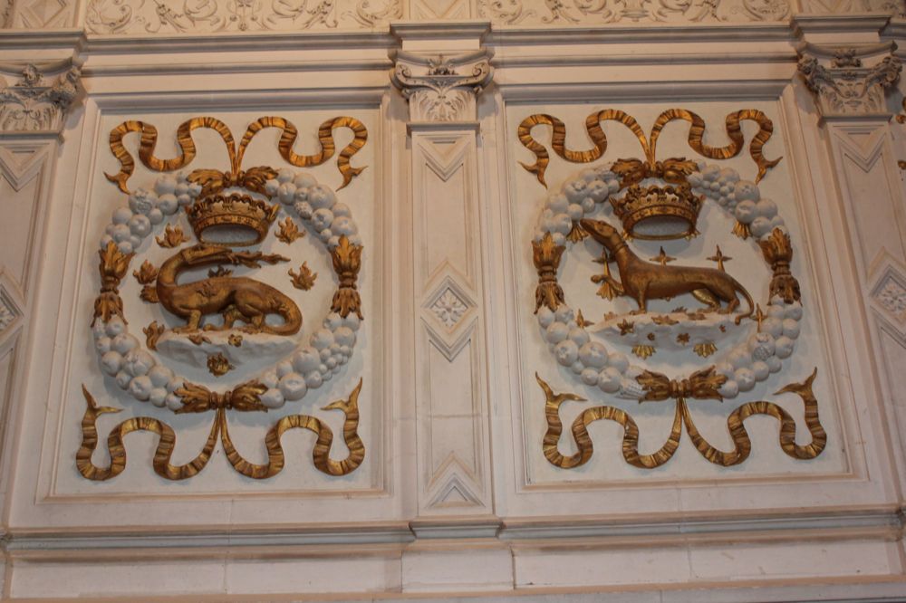 文藝復興時期的壁爐,上方的蠑螈與鼬是