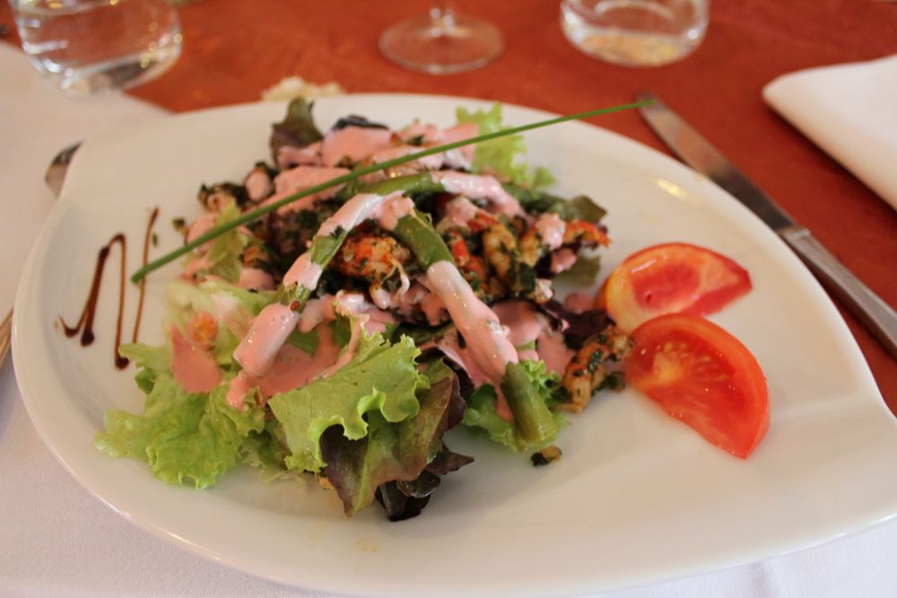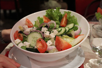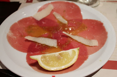 小黃當然點了招牌前菜生薄牛肉片 真的蠻特別的。 繼昨天的雞腿麵之後,我又幹了蠢事, 因為我點了一盤全部都是蔬菜的冷沙拉⋯⋯