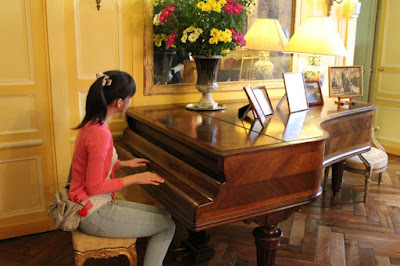 完成了一樓的參觀,通過了樓梯口的橡木門, 走上這座最早在法國建造的義大