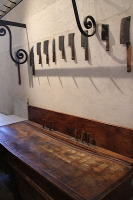 所以這個小房間內可看見各種刀具,牆上還有可以掛肉的一排鉤子,