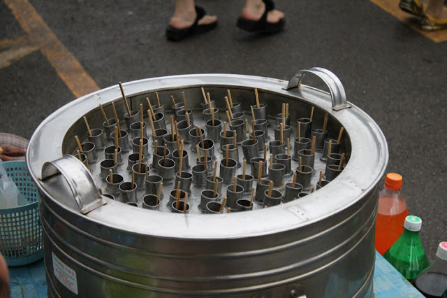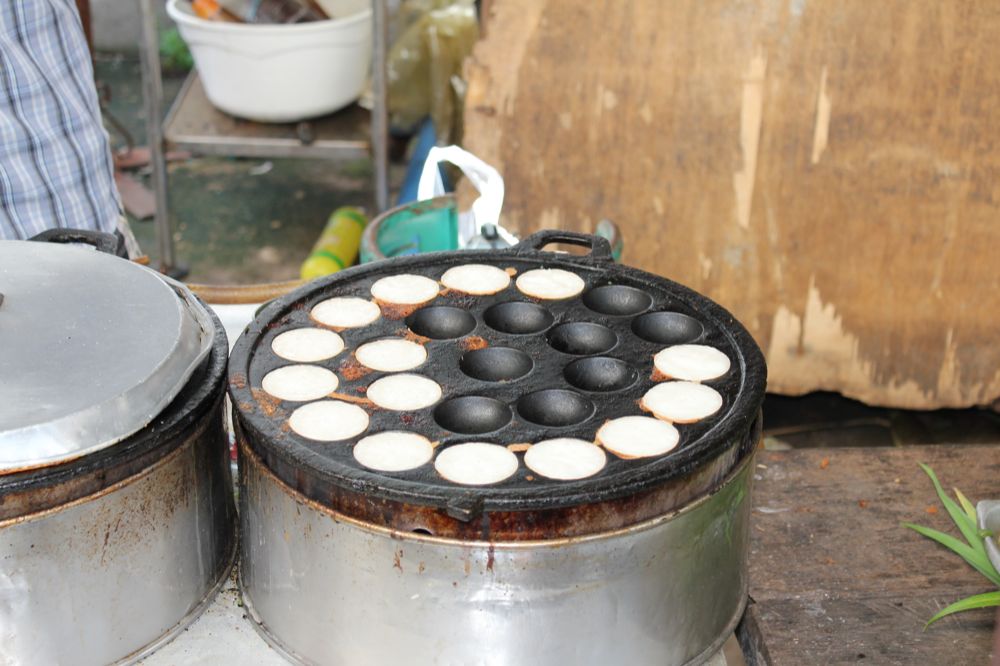 Khanom krok是早餐前的點心,用米飯與椰奶混合成的漿,