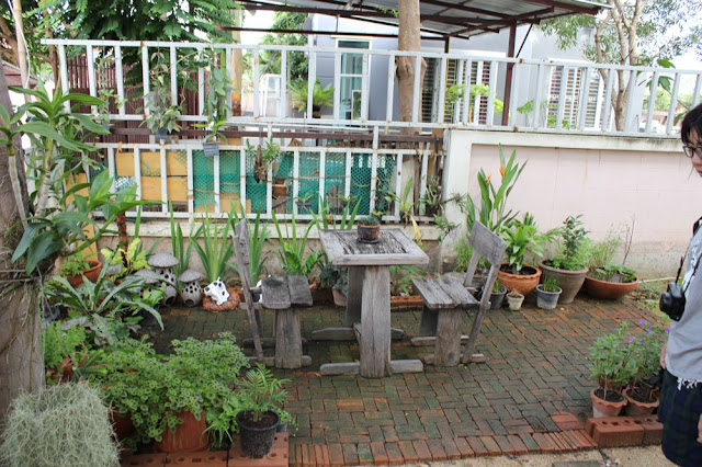 餐桌旁邊的窗,泰國的窗和台灣不一樣,紗窗不是用拉合的,是像開門一樣打開,外層玻璃窗也是 |