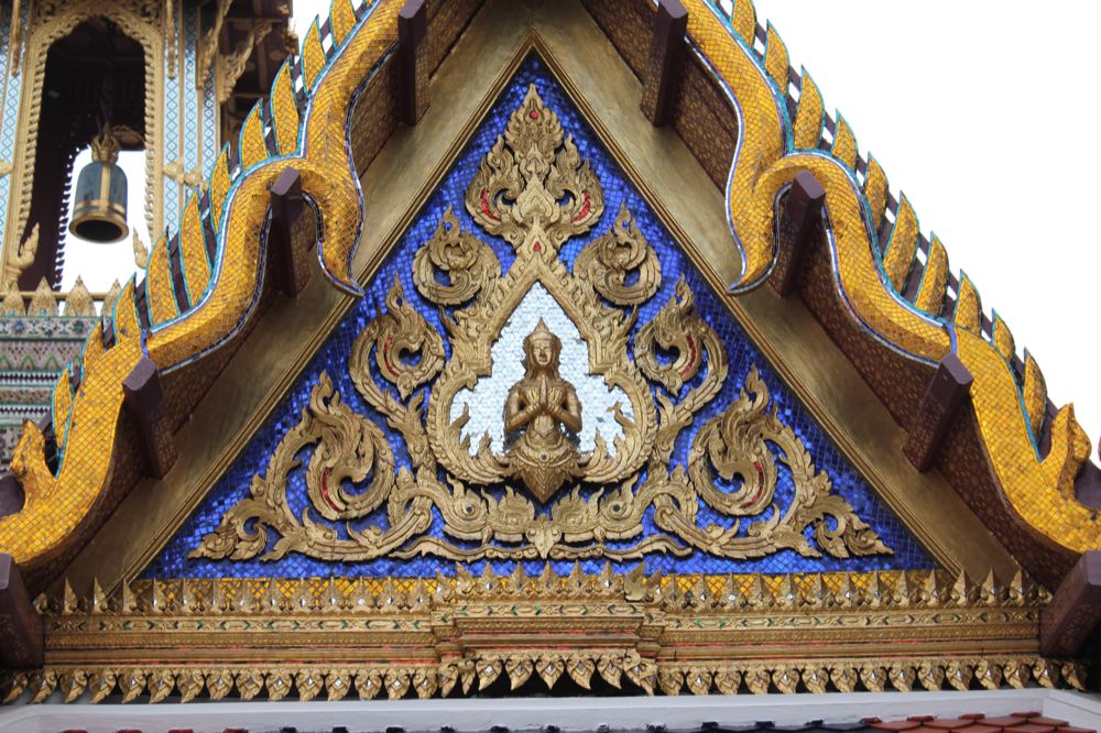 在屋簷掛著許多風鈴,在泰國的許多佛寺很常見,