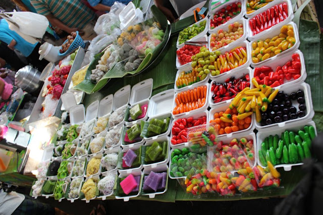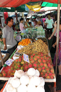 水果攤滿滿的熱帶水果,紅毛丹、山竹、和龍眼等等,