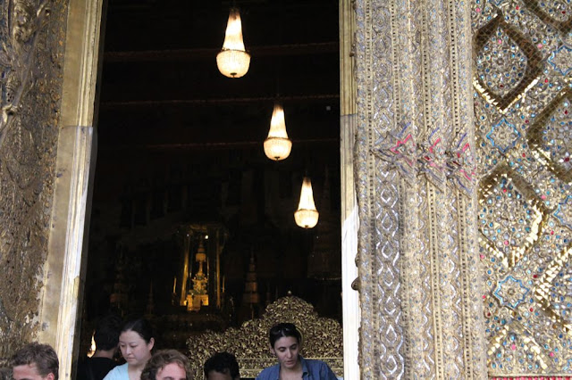 雖然殿內不能拍照,但是門口倒是很多人在拍坐在金色高座上的玉佛,