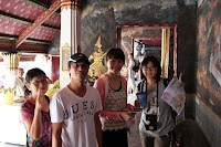 他們跪在佛像前祈求,而後會將金箔貼在佛像身上,