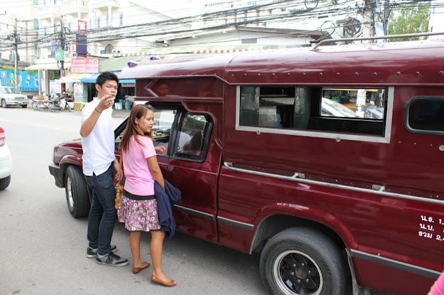 在路邊就可以找到這種紅色的Rot song taew,司機們會拿出行程套餐供遊客選擇,