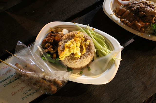 Kao klook kapi 蝦醬飯 & Moo ping 燒烤豬肉串