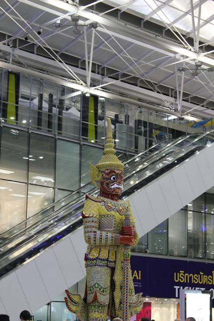 在玉佛寺的夜叉守護神出現在蘇旺納布機場