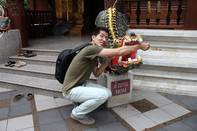 在泰國很常見到佛寺有龍在外守衛著。