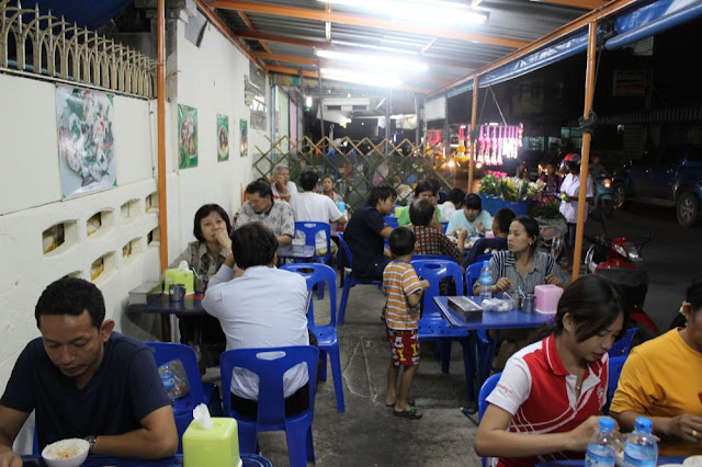 這家店賣中式早餐,招牌寫著泰文發音︰粥 |