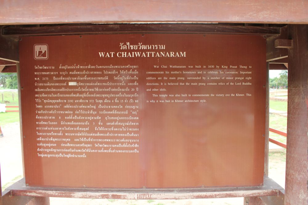 柴瓦塔那蘭寺建造於西元1630年,當時的King Prasat Thong普拉薩通王為了紀念他的母親,