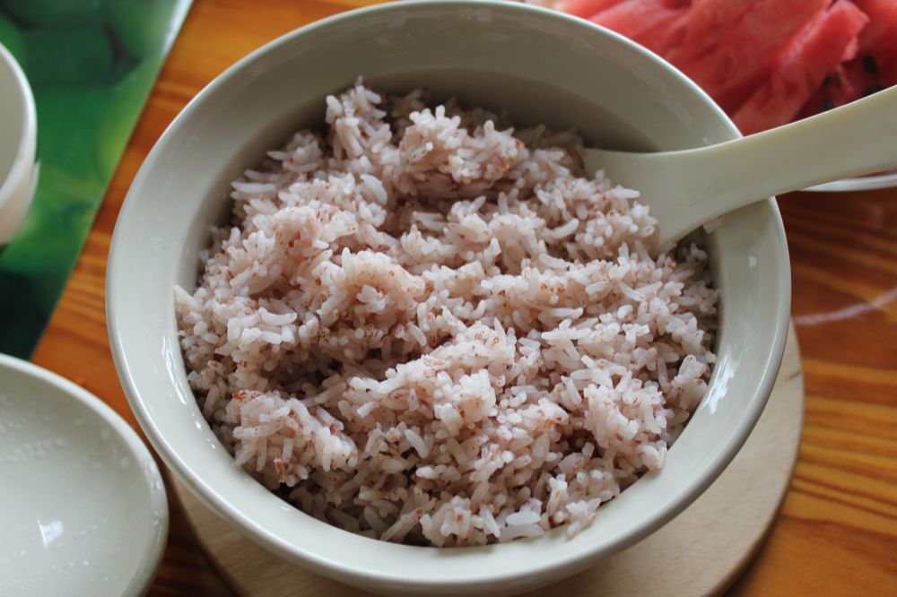 旁邊的分別是煎蛋和玉米炒蝦仁,米飯是Golf的弟弟自家栽種的,