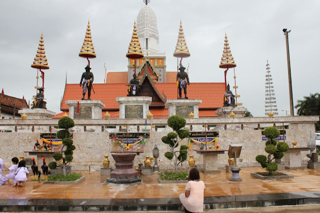 在普泰塔萬寺的停車場旁廣場有五尊泰國古代王朝的帝王像,