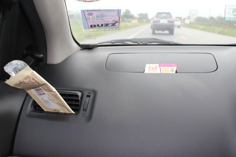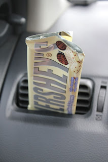 我們帶了好多昨天買的零食在車上,小黃把融化的巧克力插在冷氣口凝固一下,