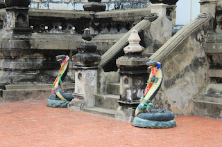 在右邊這座塔的門口有兩隻那伽守護著,還有花圈掛在牠們脖子上。