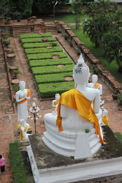 在主塔四周圍繞著對稱的八座Chedi舍利塔圍繞,因為2011年的泰國水災這裡也受到波及,