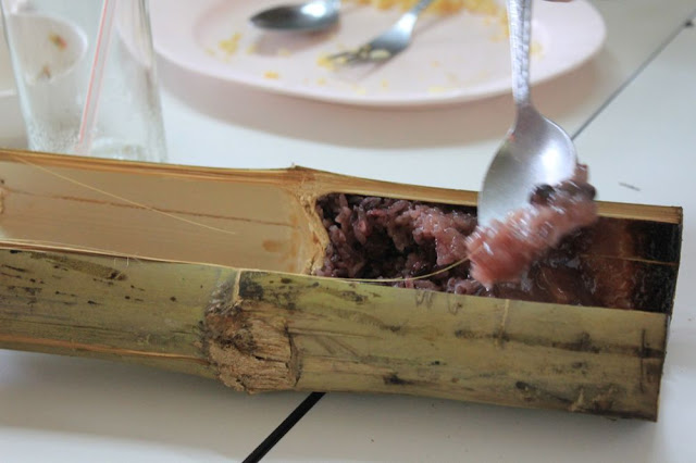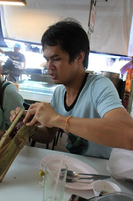 Golf在外面的攤販買了Khao larm,一種類似竹筒飯的食物,