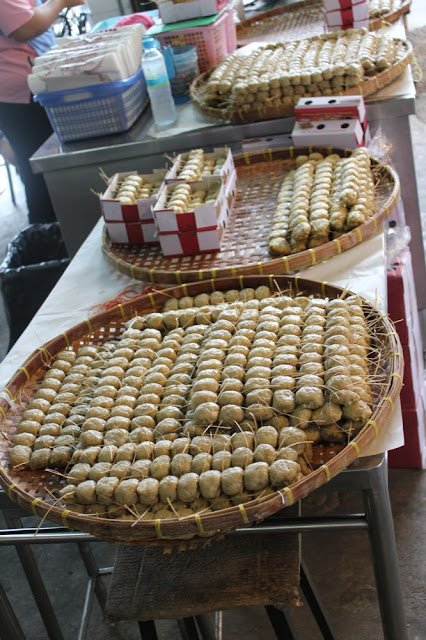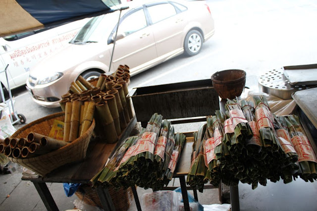 左邊是剛剛吃的Khao larm,右邊是昨天吃過黑黑長長的Khanom jaar |