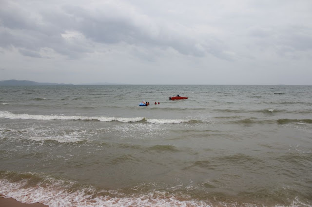 接著前進芭達雅的海邊踏浪,只是不幸的是剛好去的時候在漲潮,