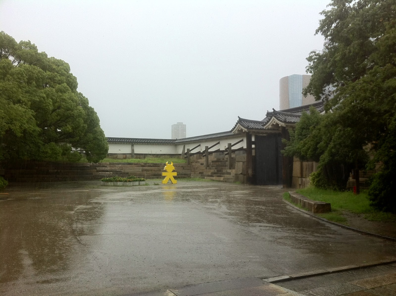 遠遠看著天守閣卻不得其門而入,全身溼透無限感慨。