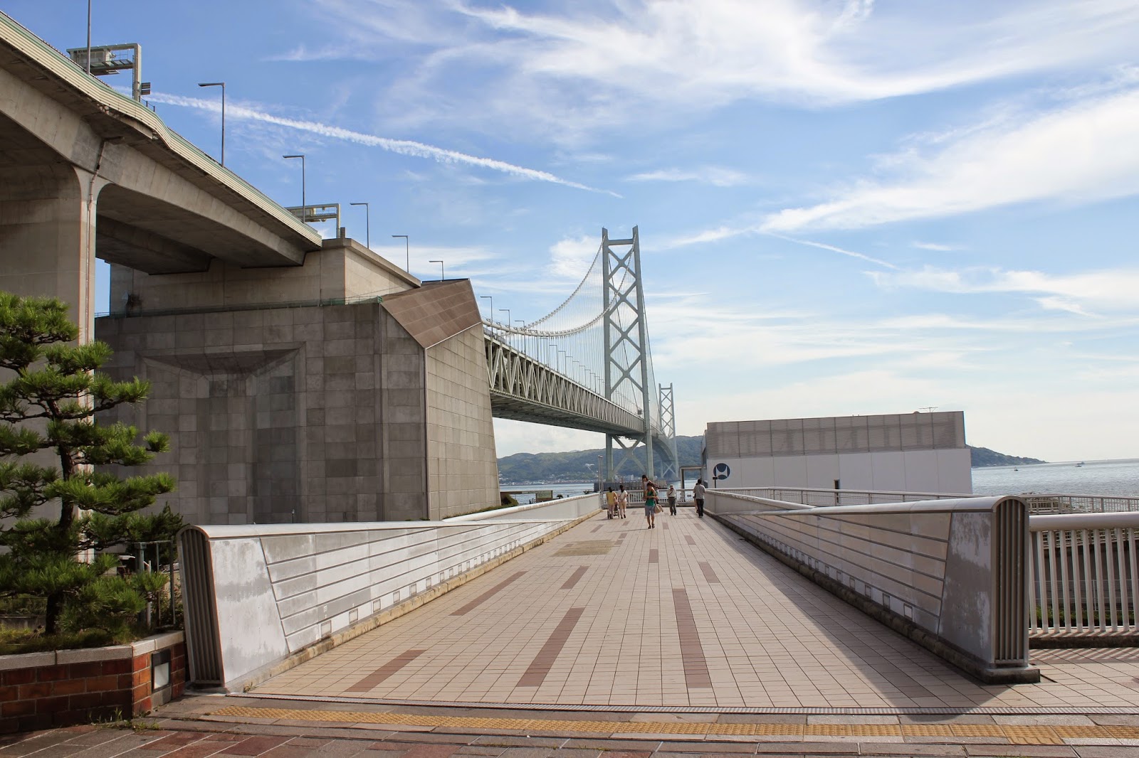 穿越天橋再下樓梯就可到觀賞明石大橋的最佳地點。
