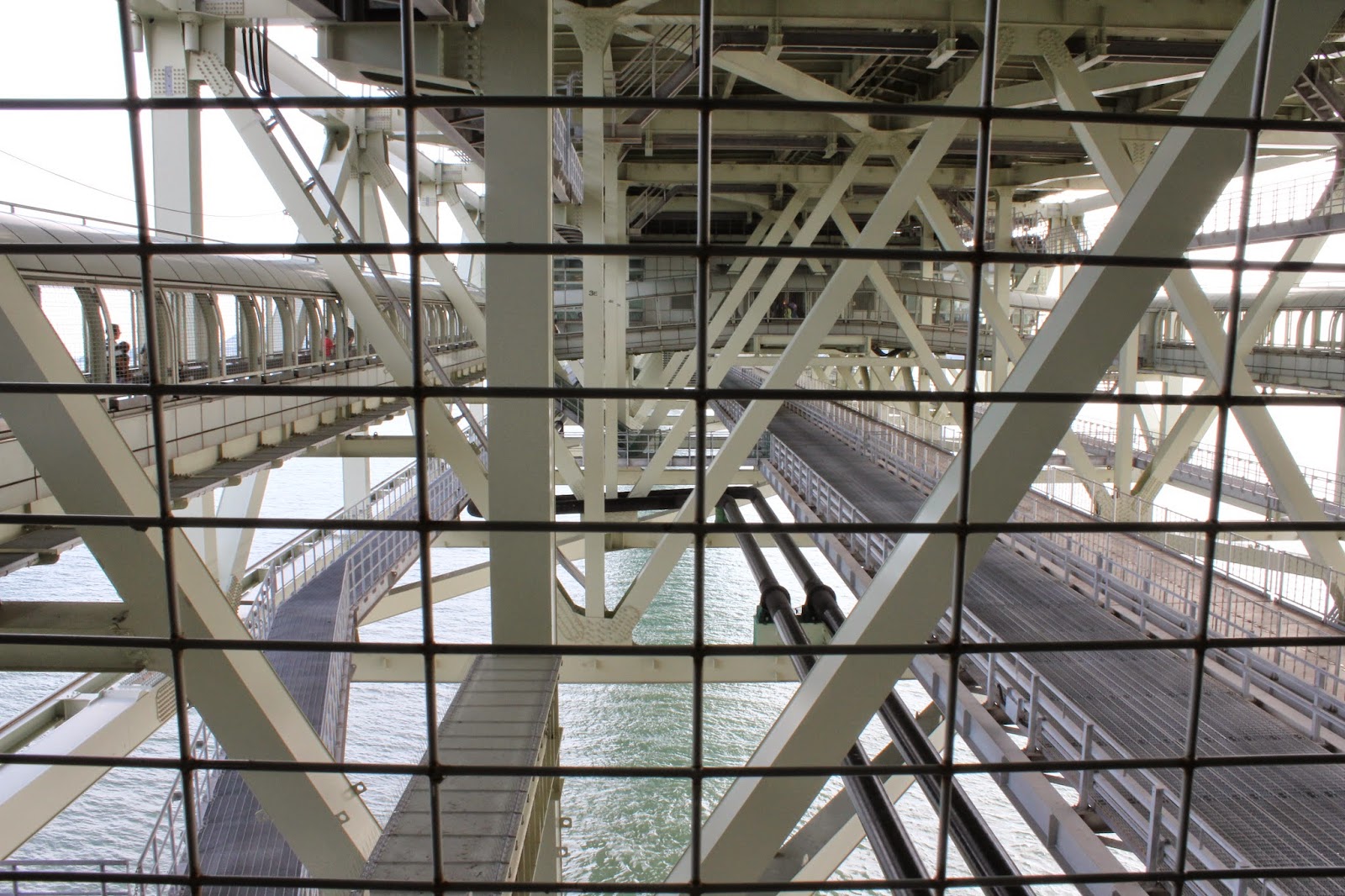 搭上JR往舞子站,在車上吃了麵包果腹,然後我們來到了明石大橋。