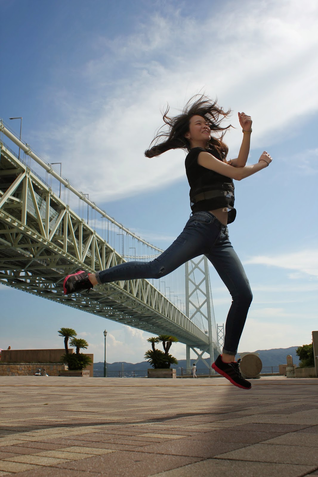 天氣很好,搭配這座明石大橋我們決定來張跳躍照。