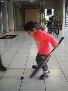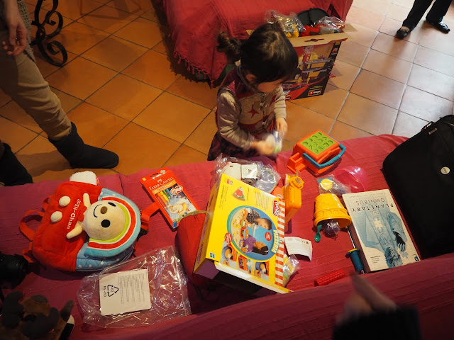 不過可愛的她很堅持把禮物交給Mathis手上,害羞的Mathis則一直想躲到媽媽背後。