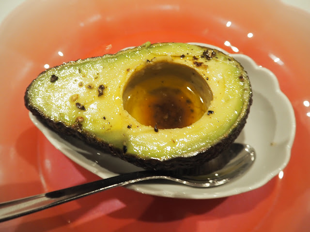 餐前點心是培根包橄欖,培根的鹹與橄欖的甜中和在嘴裡交響出美妙滋味。