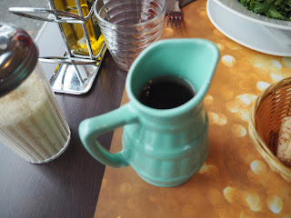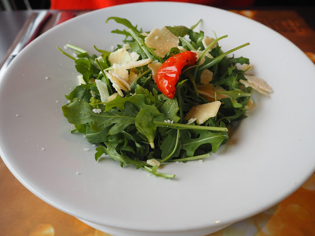 我和小黃分別點了披薩和義大利餃,搭配一份沙拉前菜以及一壺粉紅酒。