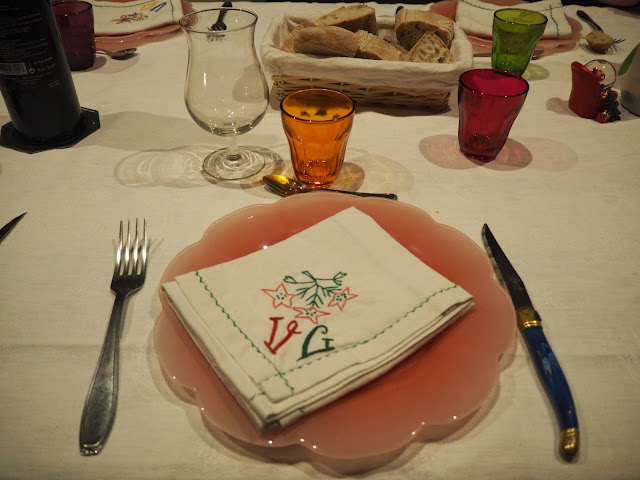 法國人針對桌上餐盤擺設十分講究,這幾天每一餐的擺設都略有不同,
