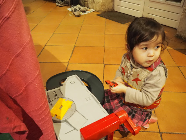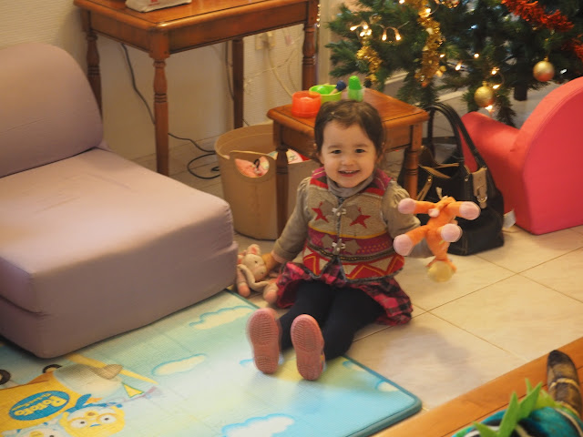 在享受聖誕聚餐的同時,小川在旁邊玩玩具玩得不亦樂乎,