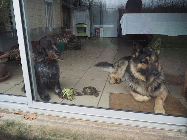 離開前兩隻狗被隔離在另外一個房間裡,他們變得太大以至於我不敢跟他們玩。