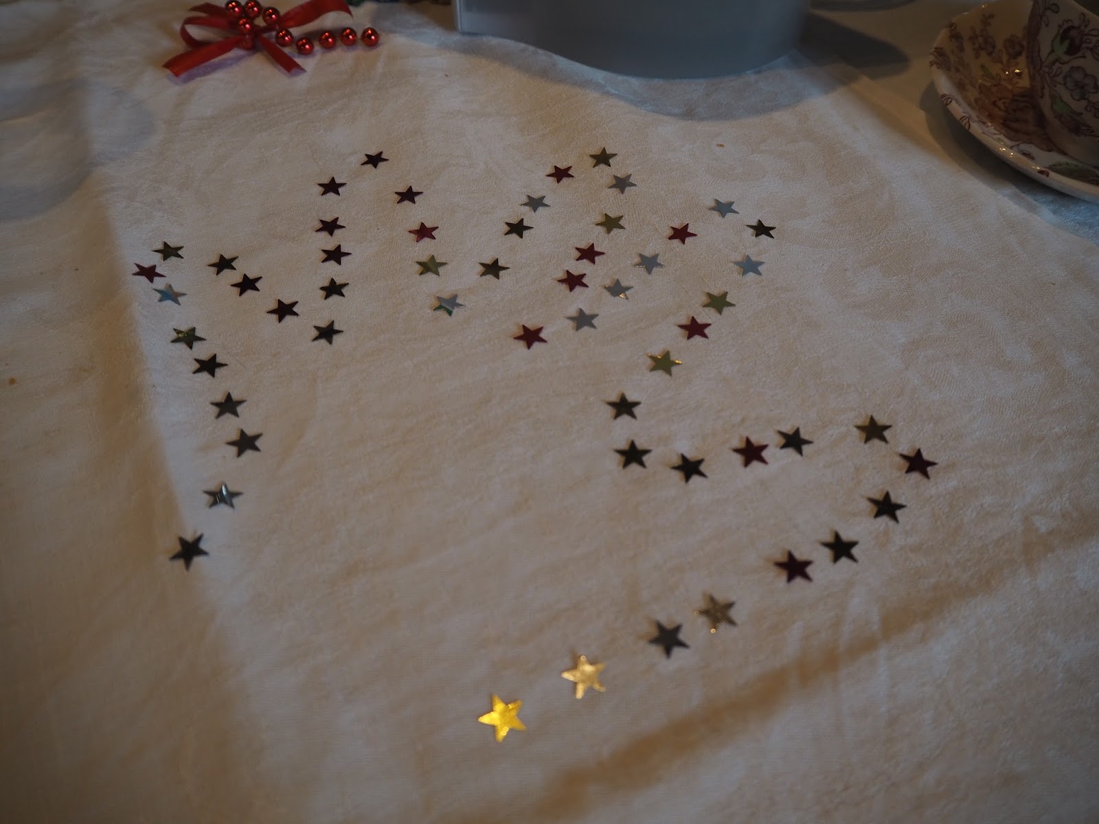 打完招呼後福類開始將禮物放置在親家親手佈置的聖誕樹下方,