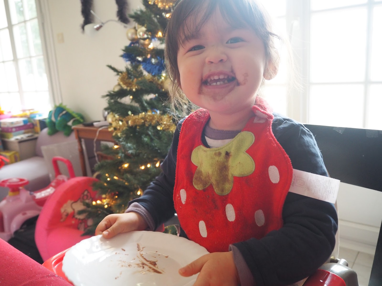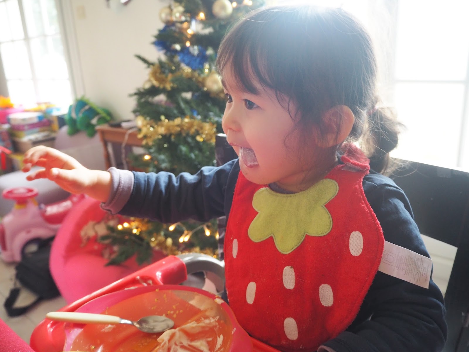 感謝老天爺終於可以吃飯了,小川被抓上餐桌椅準備先被餵飽。
