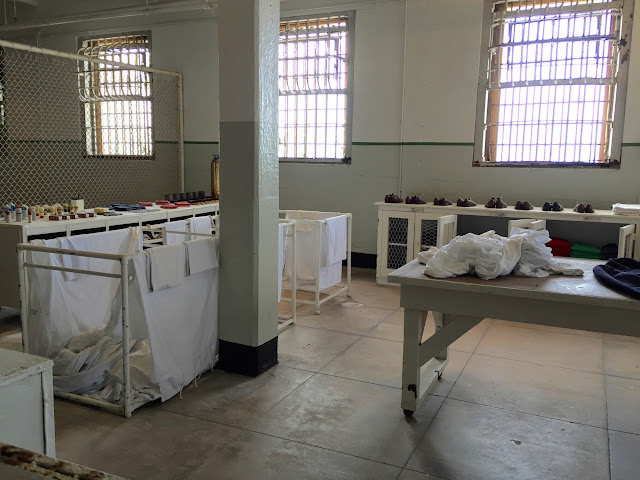 | 囚犯的衣物、鞋子與盥洗毛巾及其置物櫃的配給處 |