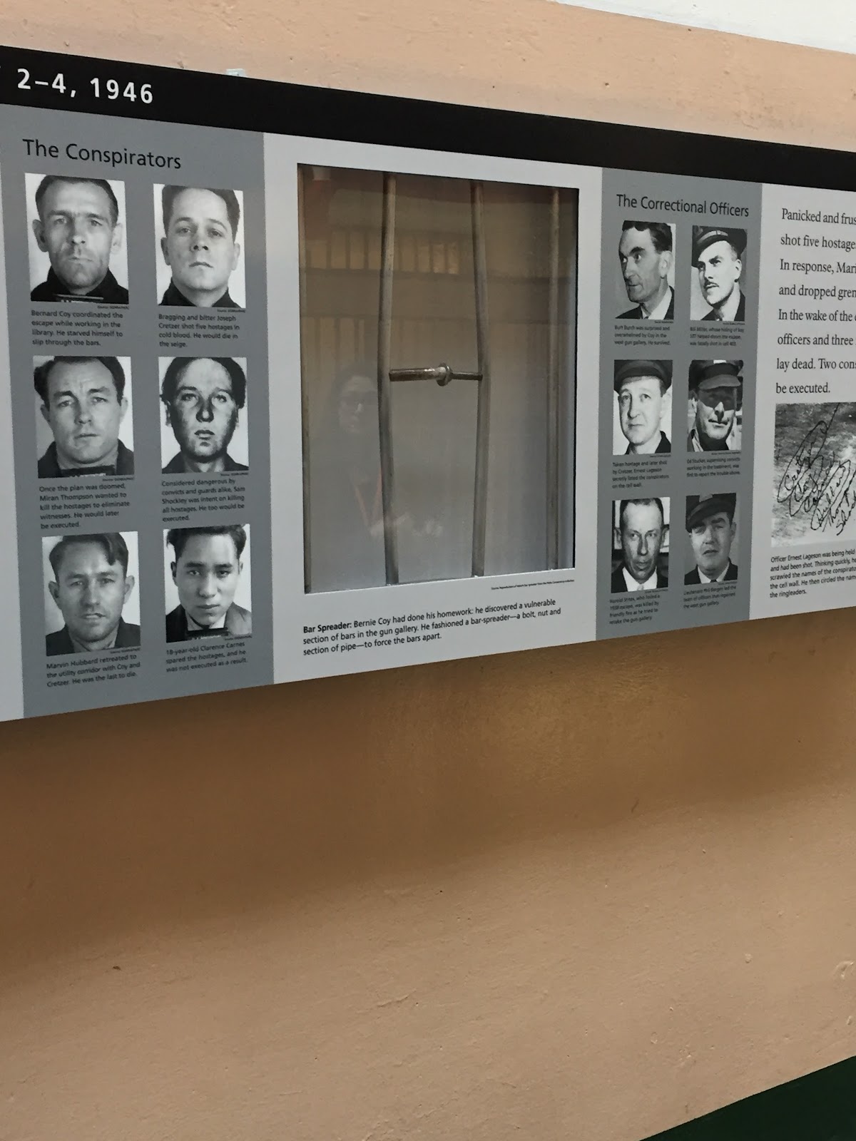 這道走廊有一段越獄故事:1946年5月2日發生一起六人逃獄事件,稱為Battle of Alcatraz。