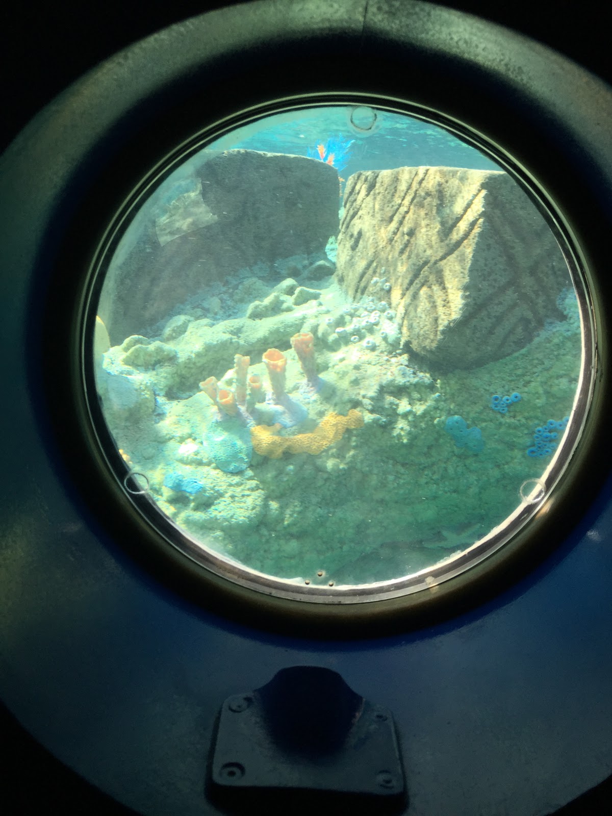 水面上黃色船隻就是潛水艇,工作人員引領我們進入潛水艇後,可欣賞一些海底景觀,