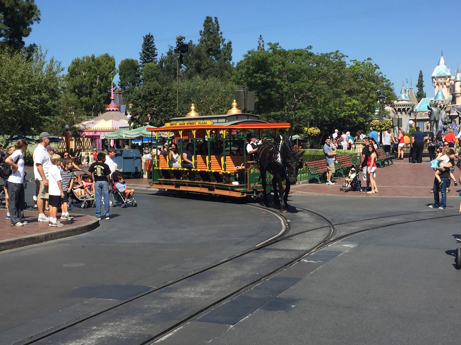 步行過海報走廊,進入通往園區的主幹道Main Street, U.S.A.。
