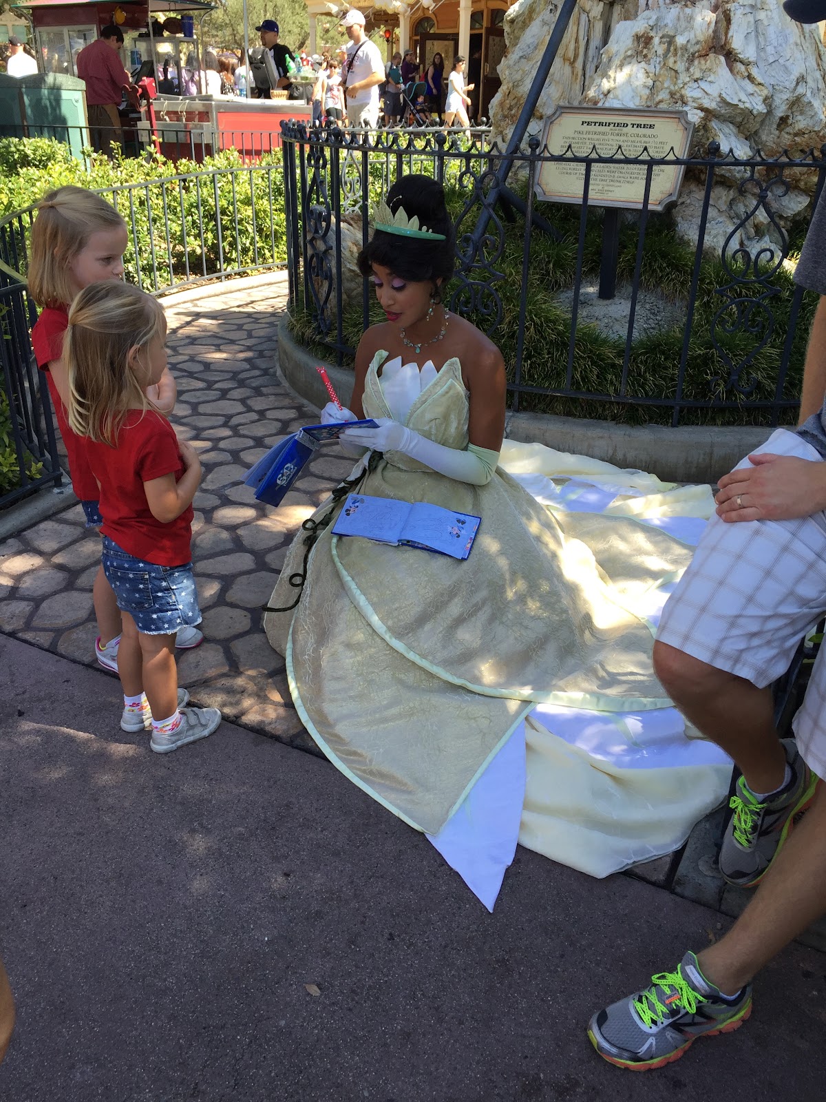 The Princess and the Frog公主與青蛙裡的Princess Tiana公主蒂安娜席地而坐幫小朋友們簽名。