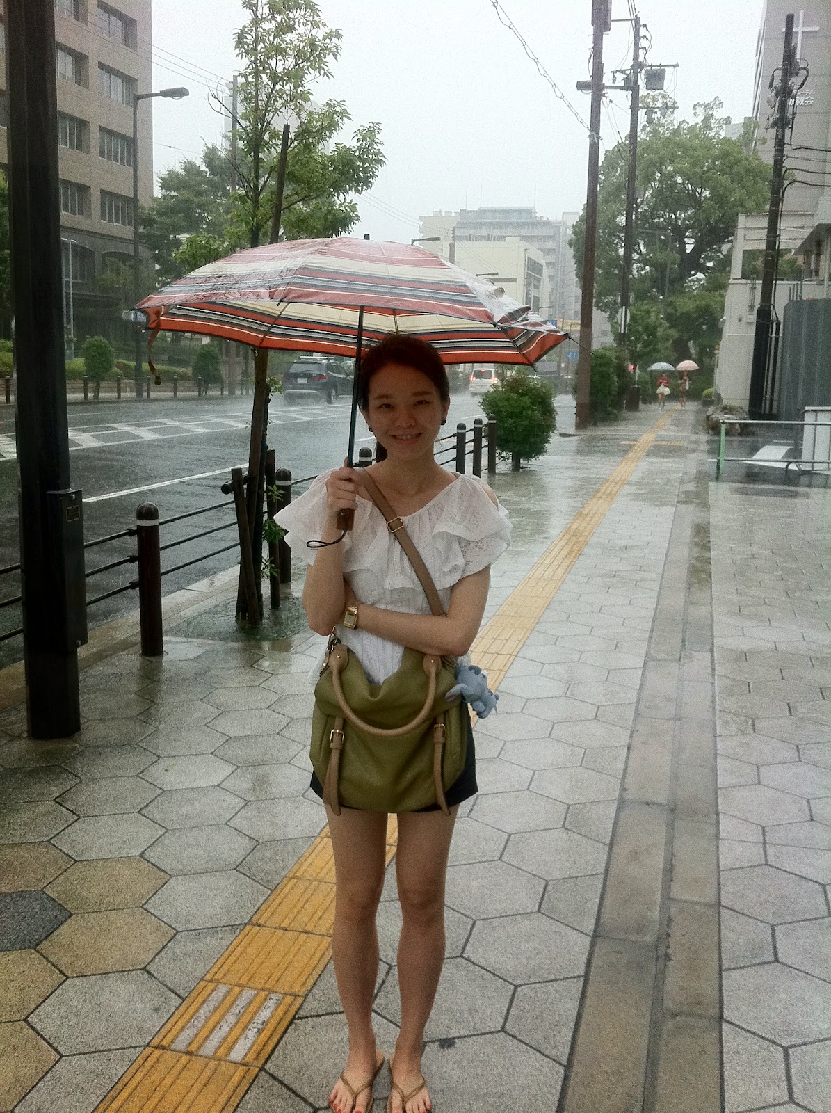 | 就穿著拖鞋撐著兩把傘,展開這一天和颱風雨搏鬥的大阪實錄 |