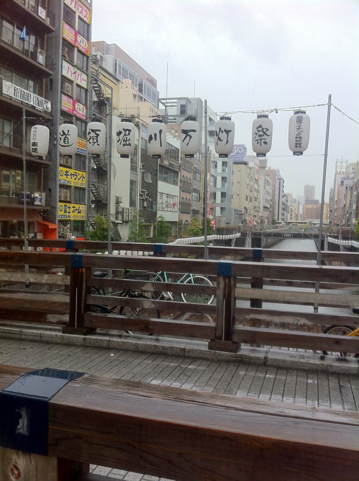 下著雨的道頓堀川,有別於晚上萬燈節的景象,彷彿揉著惺忪睡眼的小孩。