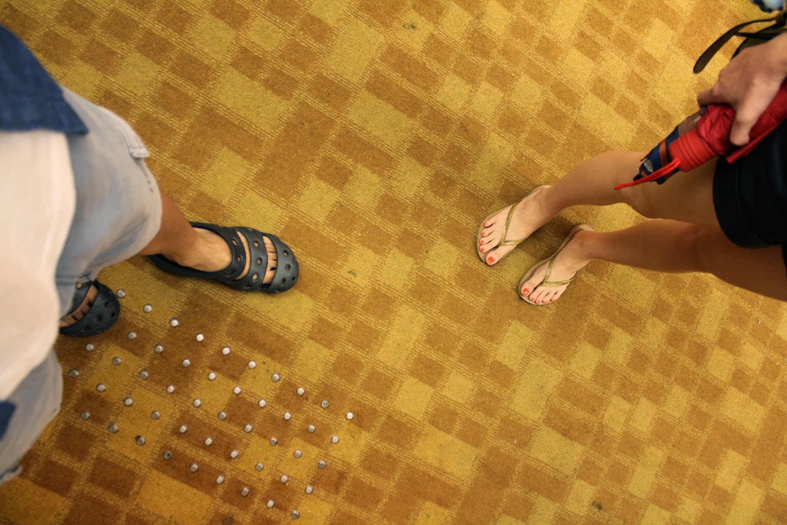 一到飯店大廳看見窗外的大雨,我們決定返回房間....換拖鞋。