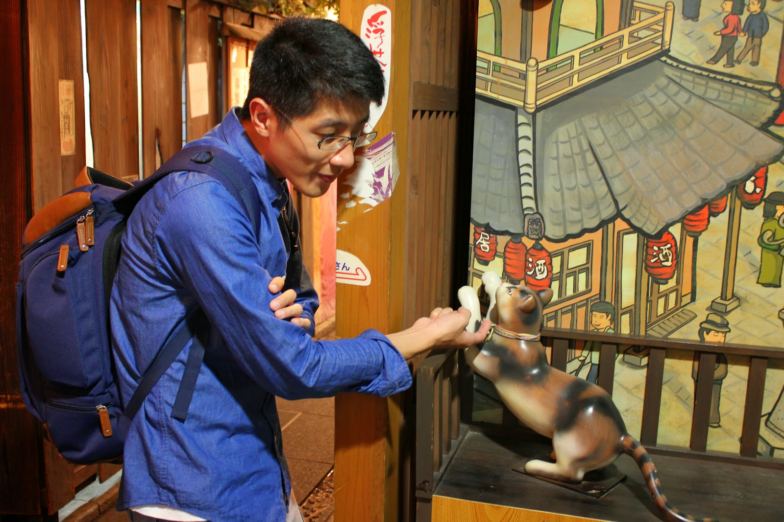 原本路上沒看到幾隻小貓,以為全大阪最瘋狂的遊客只剩我和小黃,