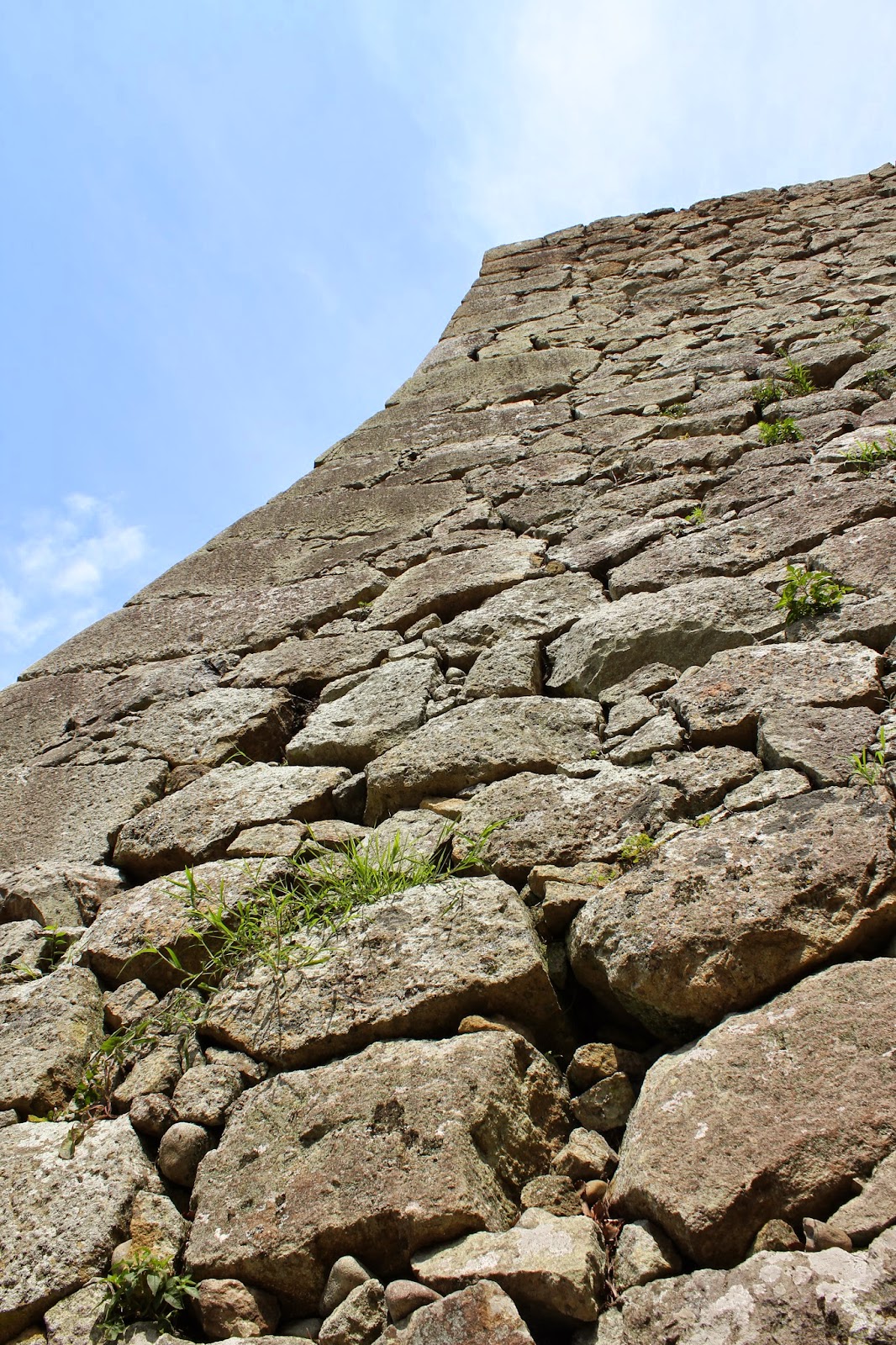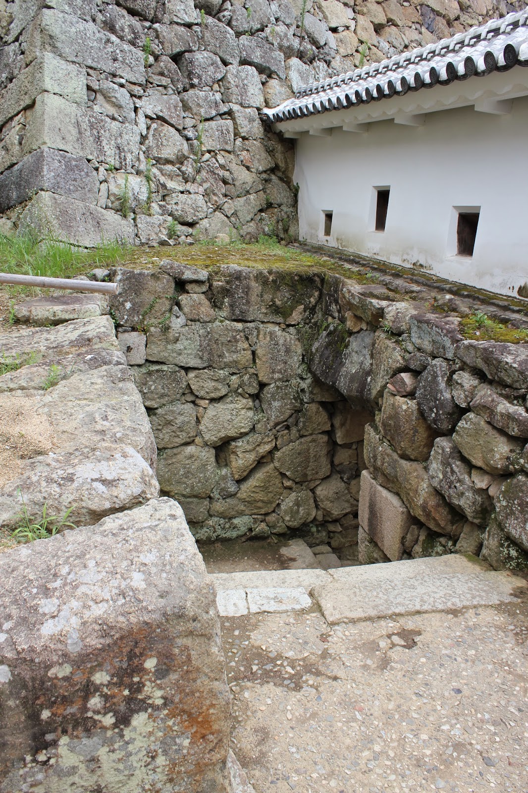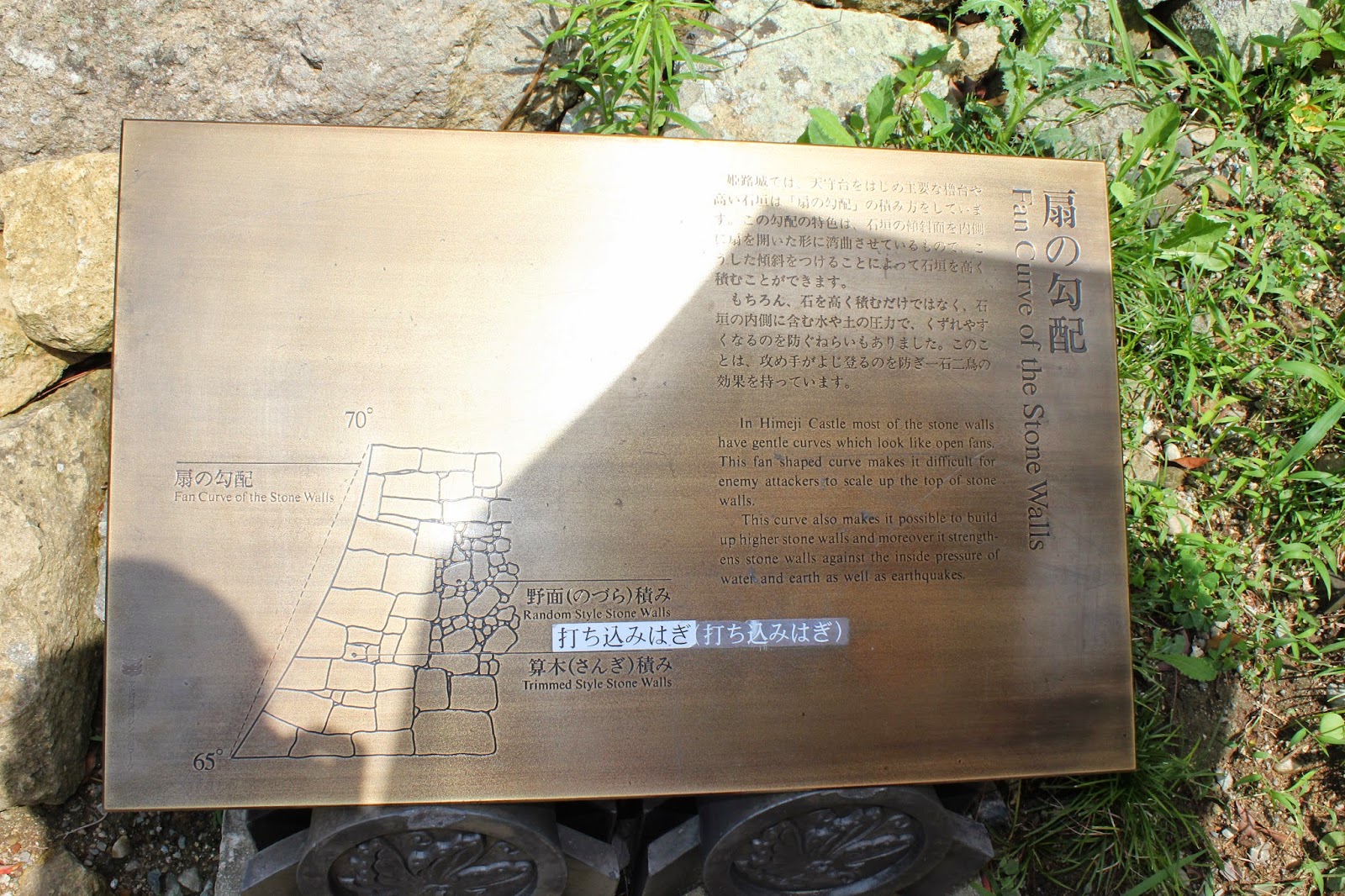 高聳的石牆為扇形勾配的結構,有別於一般設計,是姬路城易守難攻的秘密之一。